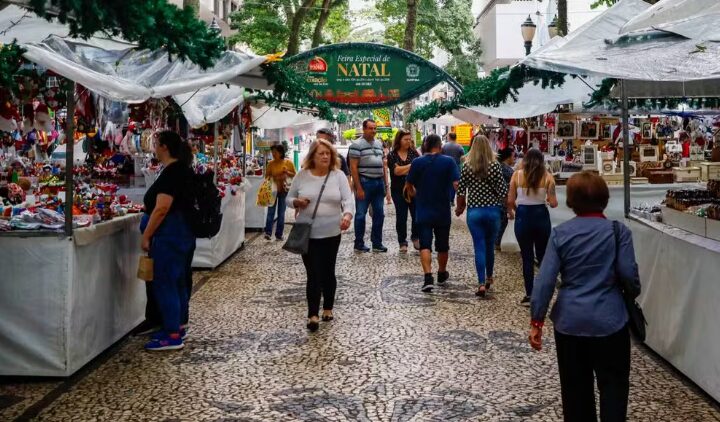 As tradicionais Feiras de Natal de Curitiba começam nas praças Osório e Santos Andrade, no Centro da capital paranaense, nesta quarta-feira (19). Com opções gastronômicas e itens artesanais, elas ocorrem até 23 de novembro.